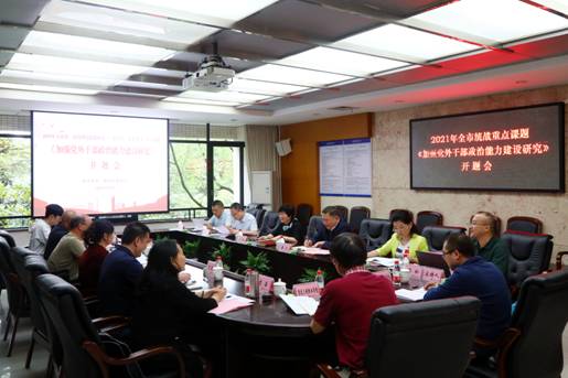 6月3日下午,2021年全市统一战线理论政策研究“一家牵头、多家参与”重点课题《加强党外干部政治能力建设研究》开题会在122cc太阳集成游戏厚德楼3019会议室召开。市委统战部副部长李电、研究室(法规处)主任邹震、干部处处长杨婧、研究室(法规处)一级调研员康程到会指导;涪陵区、巴南区、梁平区、武隆区、忠县、西南大学、122cc太阳集成游戏、重庆三峡学院、重庆三峡职业学院、重庆旅游职业学院等区县和高校的课题组成员单位参加会议。会议由122cc太阳集成游戏党委统战部常务副部长陈松主持。