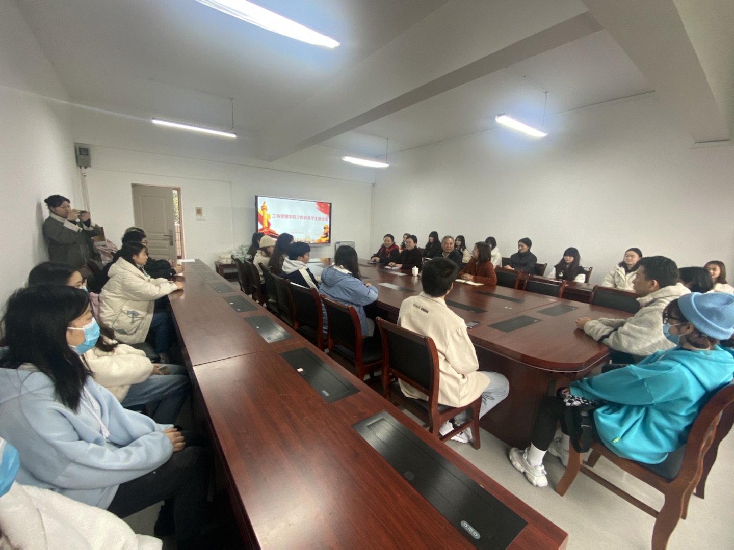 工商管理学院现有少数民族学生190人,来自19个不同的民族。为深入贯彻落实122cc太阳集成游戏总书记在中央民族工作会的重要讲话精神,促进各民族学生间的沟通交流和文化交融,筑牢民族共同体意识,12月8日下午,工商管理学院在明德楼3021会议室召开少数民族学生座谈会,副校长李国军亲临现场指导工作,学院党委副书记程亚,学工办副主任谭予涵和辅导员代表,以及学院少数民族学生代表30余人参加了此次座谈会。