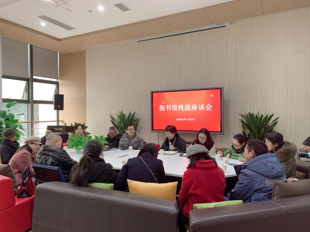 2022年1月2日新年之际,图书馆党总支在博士论坛召开了2022年统战工作新春座谈会。党总支组织图书馆职工中民盟、九三学社等民主党派成员、统战团体人员参加了本次座谈会。会议由图书馆党总支书记陈翠岚主持。