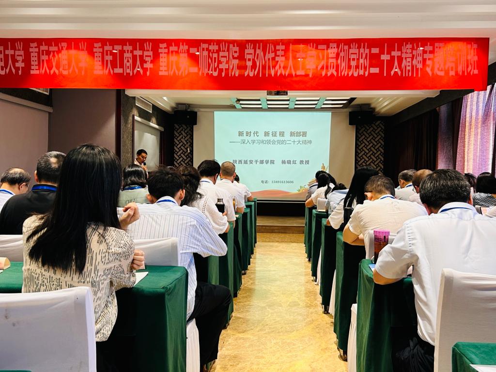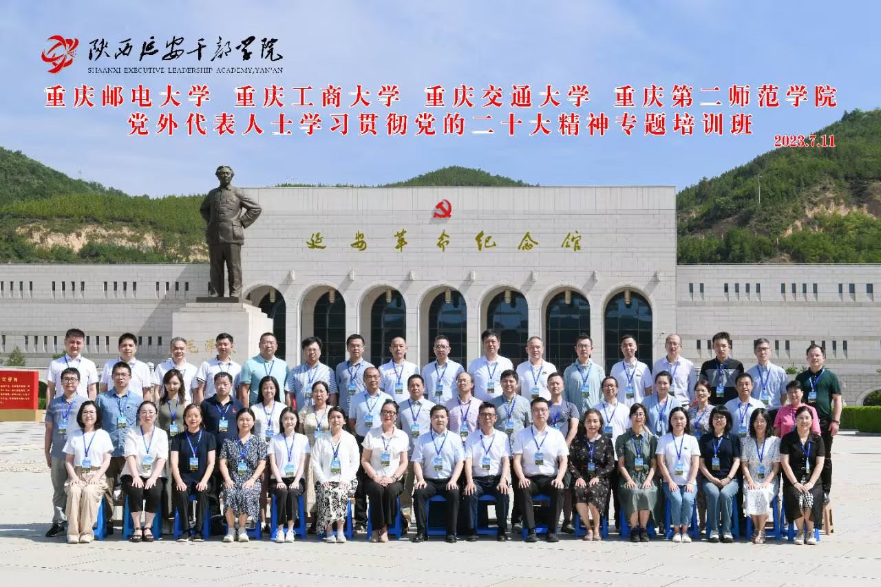 为全面学习宣传贯彻党的二十大精神,深入推进各民主党派、无党派人士和党外知识分子扎实开展“凝心铸魂强根基、团结奋进新征程”主题教育,大力夯实坚定拥护“两个确立”、坚决做到“两个维护”的政治根基,7月9日至14日,我校与重庆邮电大学、重庆交通大学和重庆第二师范学院在陕西延安干部学院王家坪分院联合举办党外代表人士学习贯彻党的二十大精神专题培训班,来自4所高校的50余名党外代表人士和统战团体骨干成员参加了本次培训,我校选派11名学员参训。