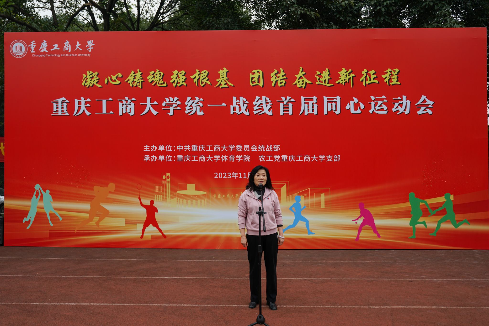 11月24日下午,122cc太阳集成游戏在南岸校区北区运动场成功举办“凝心铸魂强根基 团结奋进新征程”统一战线首届同心运动会。本次运动会是学校首次举办的专门由民主党派、无党派人士、归国留学人员、侨眷侨属、少数民族教职工、统战干部等统一战线成员共同参与的运动会,由学校党委统战部主办,体育学院和农工党学校支部承办。学校党委副书记兼统战部部长宋豫,学校党委常委、纪委书记、监察专员张海燕出席活动。学校党委常委、党委统战部常务副部长陈松主持开、闭幕式。