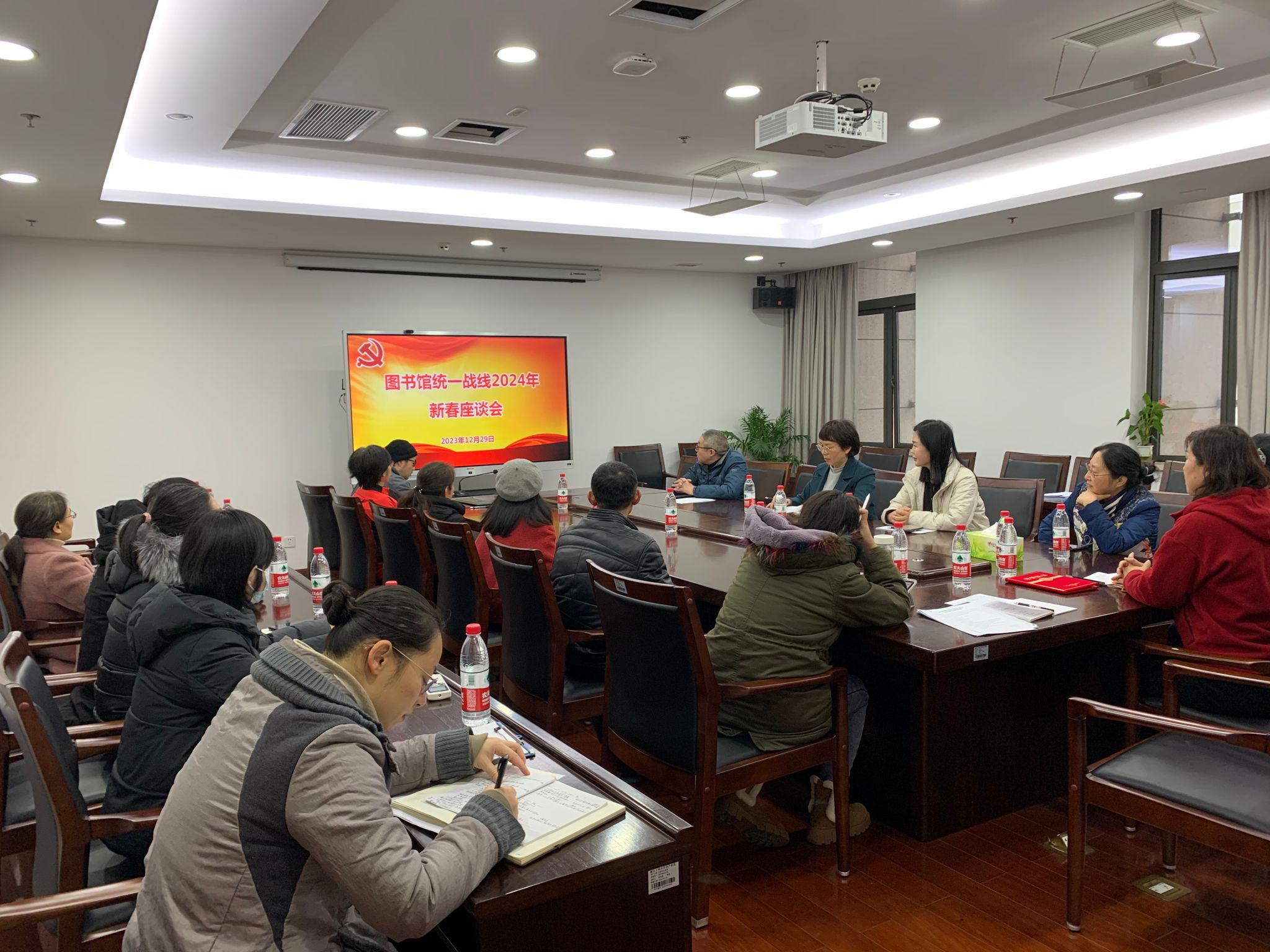 12月29日上午,图书馆在N610室召开统一战线2024年新春座谈会,全体党总支委员、支委委员,党外人士代表等参加会议。会议由图书馆党总支书记陈翠岚主持。