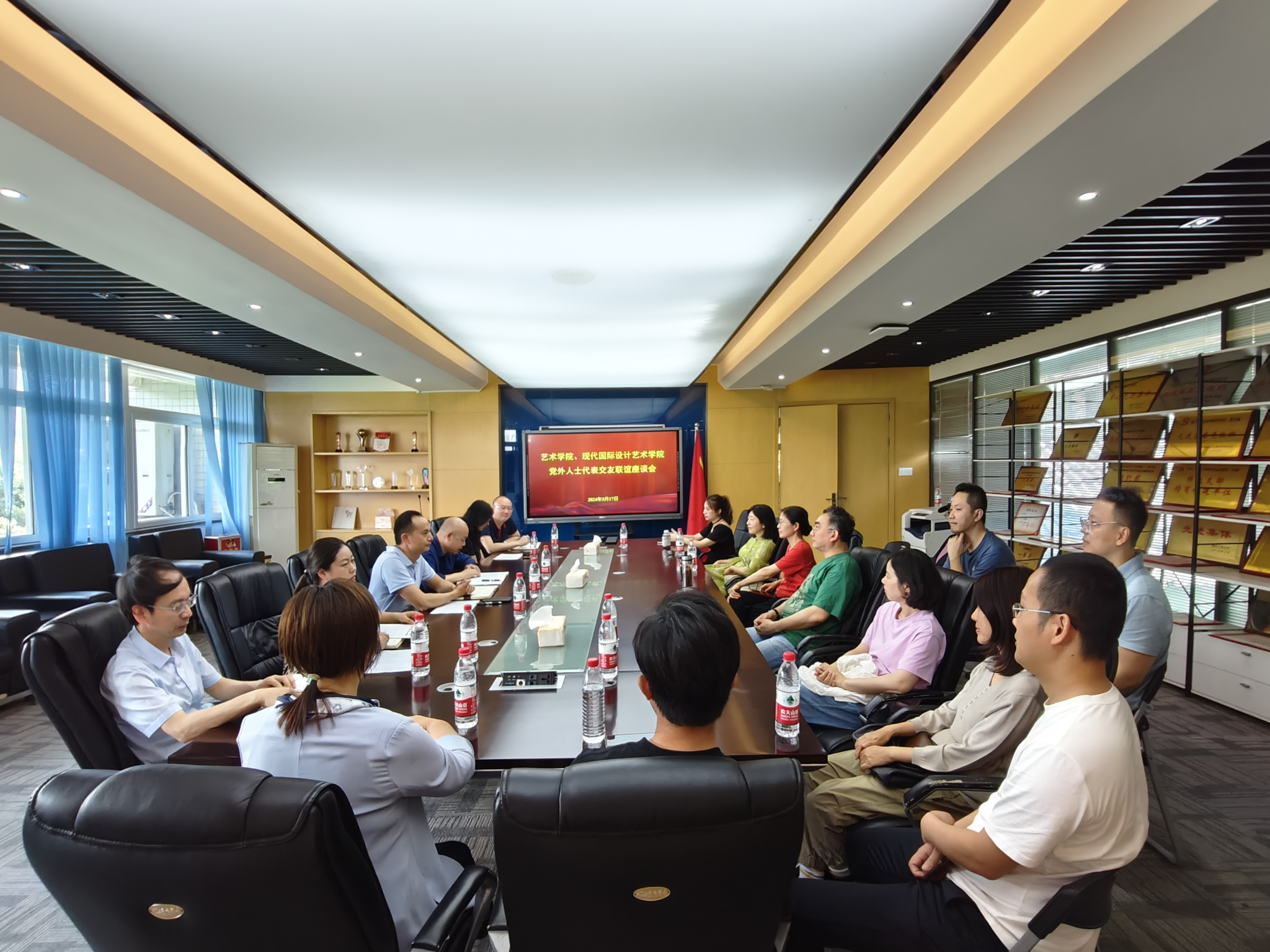 5月17日上午,艺术学院、现代国际设计艺术学院召开党外人士代表联谊交友座谈会。两院班子成员、专职组织员、相关科室负责人、党外人士代表参加座谈。会议由艺术两院党委(党总支)书记唐玺主持。
