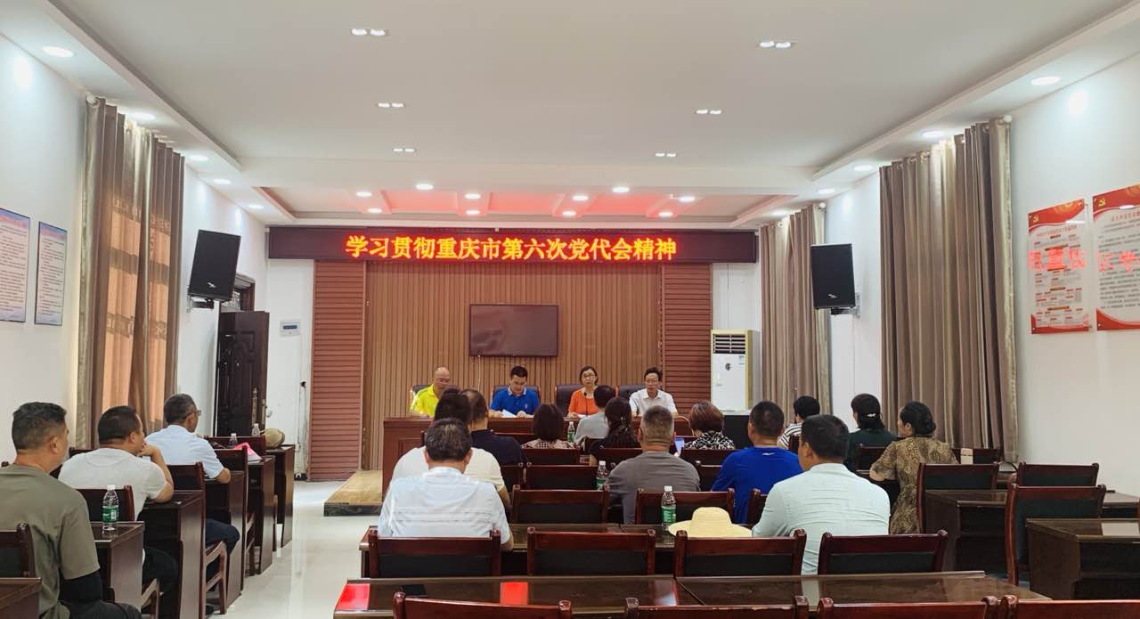 2022年6月24日,致公党我校江北校区支部走进忠县马灌镇果园村开展“凝聚致公力量,助力乡村振兴”主题调研活动,并在果园村村委会第一会议室组织召开中共重庆市第六次代表大会精神学习交流会。江北区政协委员、致公党江北区委会副主委赵光宏,致公党我校江北校区支部副主委闻道君、我校派驻忠县马灌镇果园村驻村第一书记兼工作队长杨徐勇、果园村党支部书记刘斌等20余人参加会议。会议由闻道君主持。