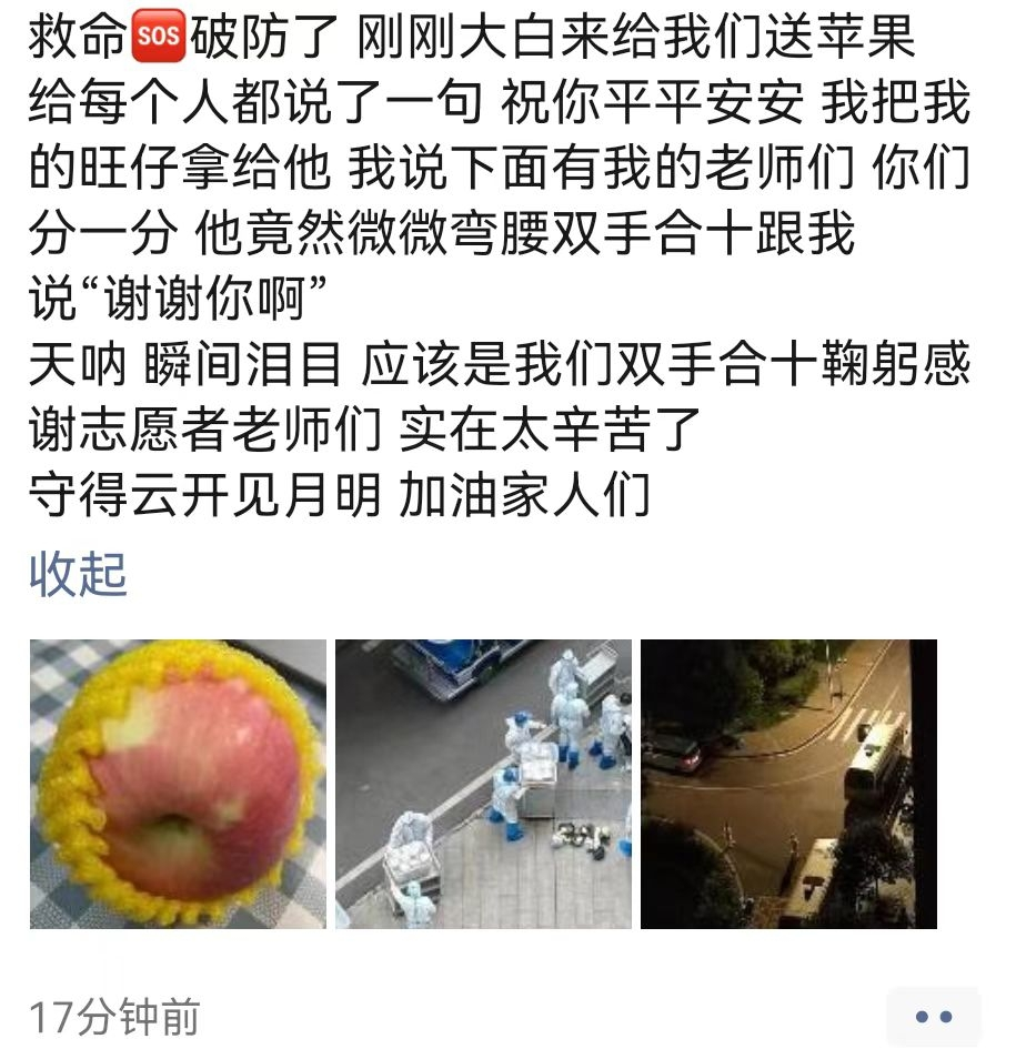 2022年10月11日凌晨,学校接重庆市南岸区卫健委通知,我校南岸主校区一学生核酸检测为阳性。学校第一时间启动应急处置预案,自11日4时起实施临时管控。面对疫情突然来袭,防控形势严峻复杂,在学校党委的坚强领导下,以最快的速度组织力量奔赴疫情防控第一线,吹响“同心战疫”的集结号。学校统一战线广大成员立即响应,众志成城携手学校抗击疫情,积极参加各类志愿者服务工作。特别是在第五届市政协常委、校长孙芳城同志牵头下,协调学校会计学院、学校侨联、民进工商大学支部和重庆市工程机械商会为管控在校的学生捐赠爱心苹果,让学生感受到来自统一战线和社会的关爱,与学校携手共渡难关,抗击疫情。该批捐赠苹果已于10月15日晚上全部发放到学生手中。学生反响:“这回的苹果,异常甜!”