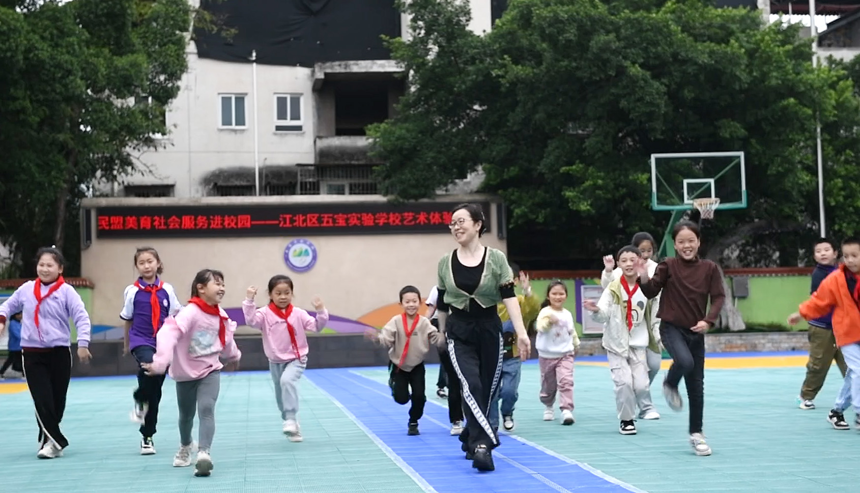 当天,江北区五宝实验学校的166名小学生体验了包括爵士舞蹈艺术体验、童声合唱、油纸伞绘画和漆扇制作在内的多项活动。在爵士舞蹈体验环节,学生们在陶老师的带领下,通过热身、动作模仿,最终学会了爵士舞基本动作。他们的舞姿虽然略显稚嫩,但充满了活力和热情。童声合唱教学则让学生们学会了经典儿童歌曲《虫儿飞》,他们的歌声清脆悦耳,充满了童真和童趣。油纸伞和漆扇制作体验更是让学生们感受到了传统文化的魅力。在志愿者的指导下,学生们亲手制作属于自己的油纸伞和漆扇。他们小心翼翼地涂抹颜料、每一道工序都充满了他们的创意。当看到自己的作品完成时,学生们脸上洋溢着自豪和喜悦的笑容。体验结束后,学生们在操场上展示了他们的创作成果,并进行了舞蹈和合唱展演。展演后评选出了各项活动的优秀作品,并颁发了纪念品。