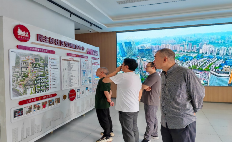 结束博物馆参观后,会员们前往九龙坡区谢家湾街道民主村社区,先后参观了“红心蚂蚁”志愿服务驿站、社区会客厅、建设渠广场、社区食堂及党群服务中心,直观感受到中共基层党组织在社区治理、民主实践与民生改善中的引领作用。